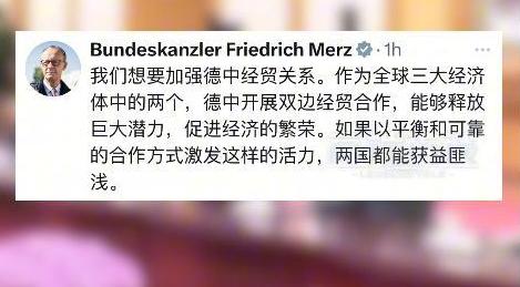 Friedrich Merz daha sonra sosyal medyada Çince olarak bir paylaşım yaptı:
