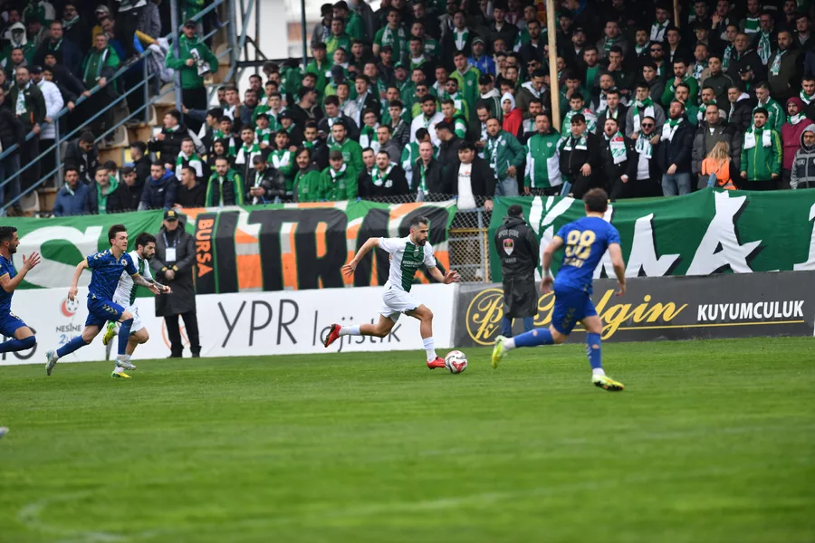 Yeşil beyazlılar 12. dakikada Soner Aydoğdu’nun golüyle 1-0 öne geçerken, ev sahibi ekip 26. dakikada Arda Çolak’ın kaydettiği golle eşitliği sağladı. İlk yarının uzatma anlarında 45+2’de Salih Kavrazlı sahneye çıktı ve Bursaspor’u yeniden öne geçirerek devrenin 2-1 tamamlanmasını sağladı. İkinci yarıda skor üstünlüğünü koruyan yeşil beyazlı ekip, 90+6. dakikada İlhan Depe’nin golüyle farkı ikiye çıkardı ve karşılaşmayı 3-1 kazanarak hanesine üç puanı yazdırdı.