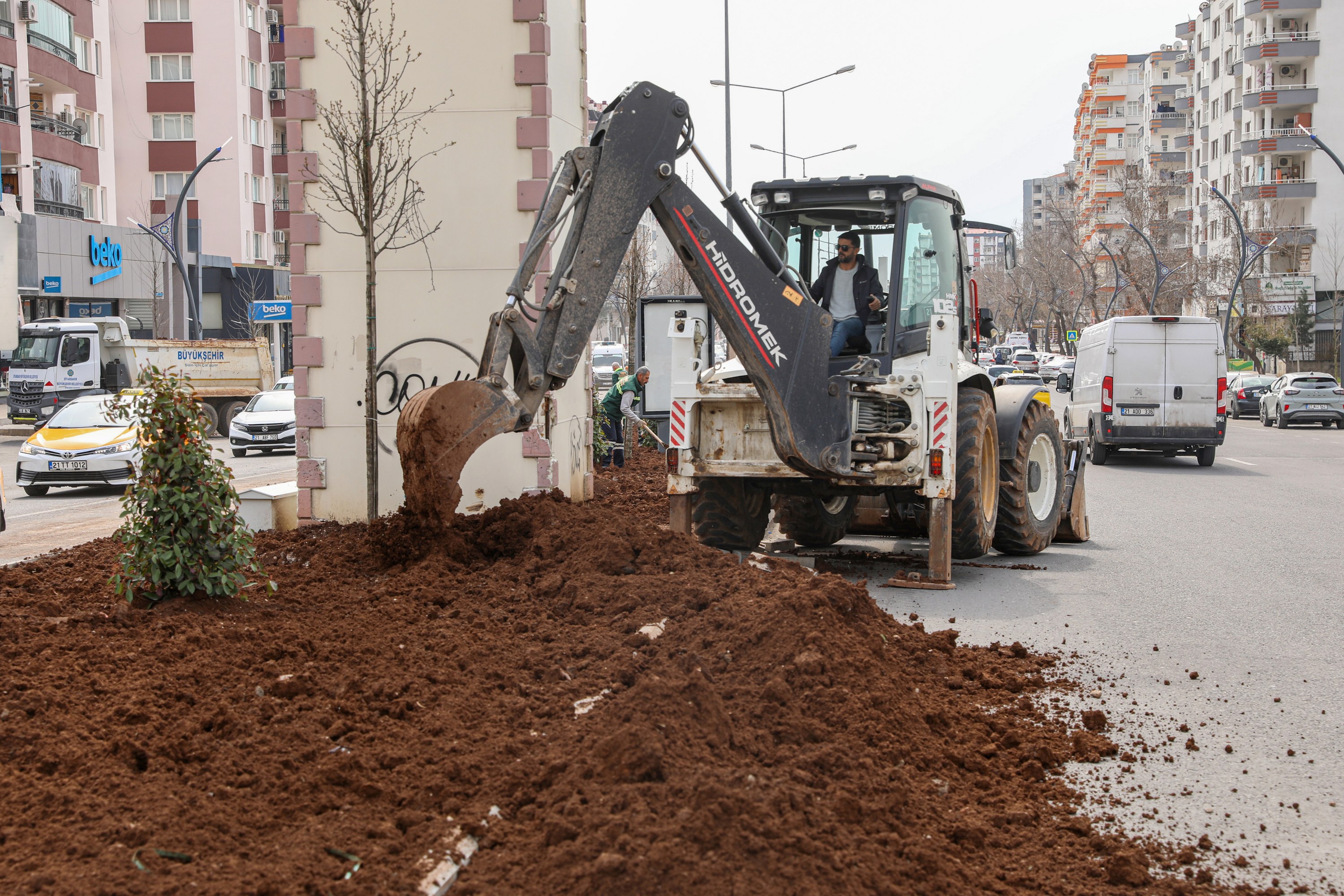 Diyarbakır Büyükşehir Belediyesi, Selahattin Eyyubi Bulvarı’nda peyzaj ve ağaçlandırma çalışmalarını sürdürüyor.
