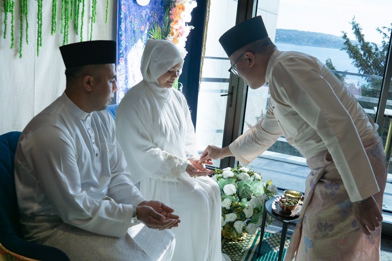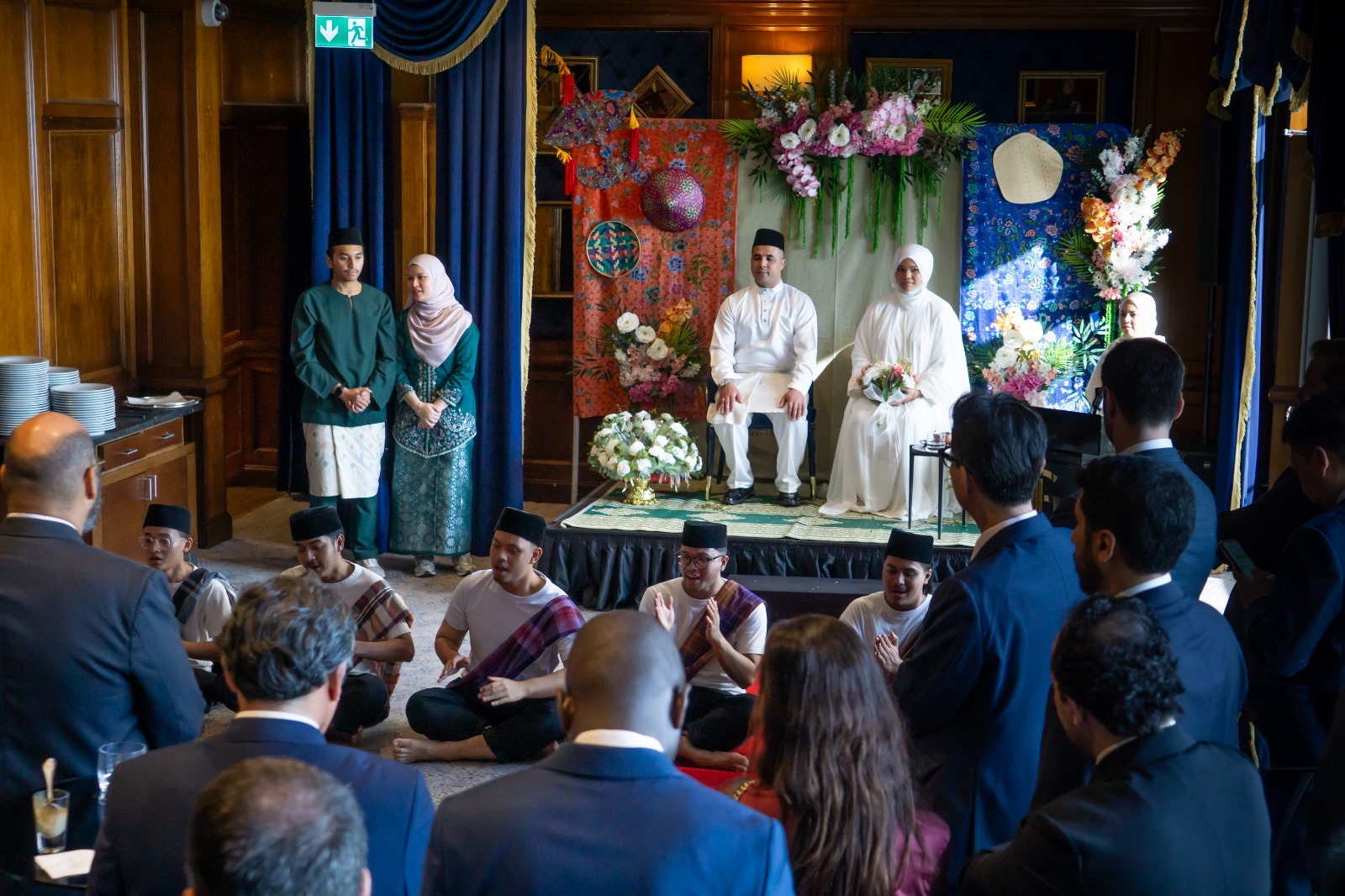 İstanbul’da bulunan diplomatik misyon temsilcileri, Malezya diasporası ve Malezya dostlarının bir araya geldiği bu etkinlikte de gelin ve damada tahtlarında tebrikler iletildi.