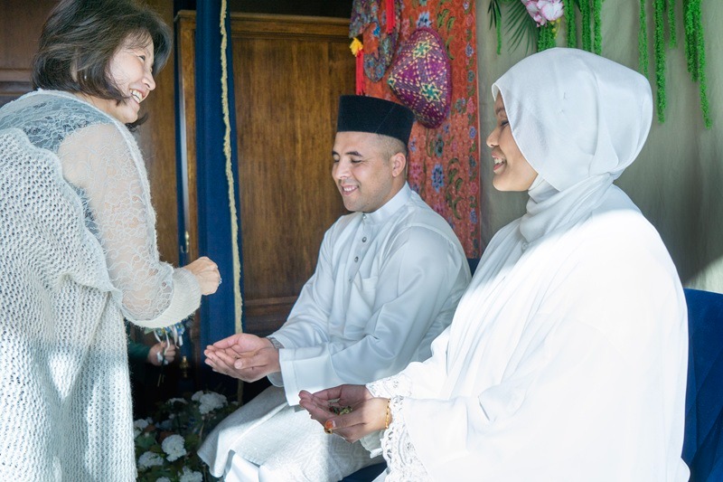 Malezya düğün geleneklerine göre gelin ve damat tahta oturduktan sonra yakın aile üyeleri, akrabalar ve önemli misafirler sırayla kürsüye çıkarak çifti tebrik eder ve kutsarlar.
