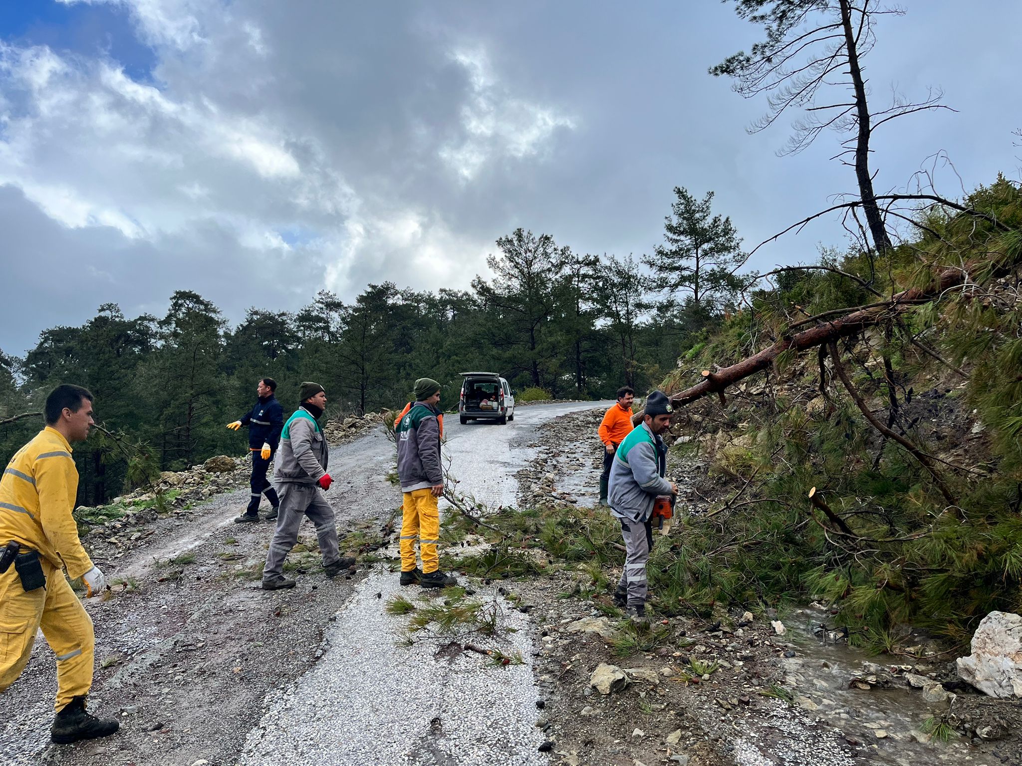 Marmaris’te gece saatlerinden itibaren etkili olan sağanak yağmur ve fırtına, belediye ekiplerini sahaya çıkardı. Devrilen ağaçlara müdahale edilirken, dere yatakları ve sahil kesiminde yoğun temizlik çalışmaları gerçekleştirildi.