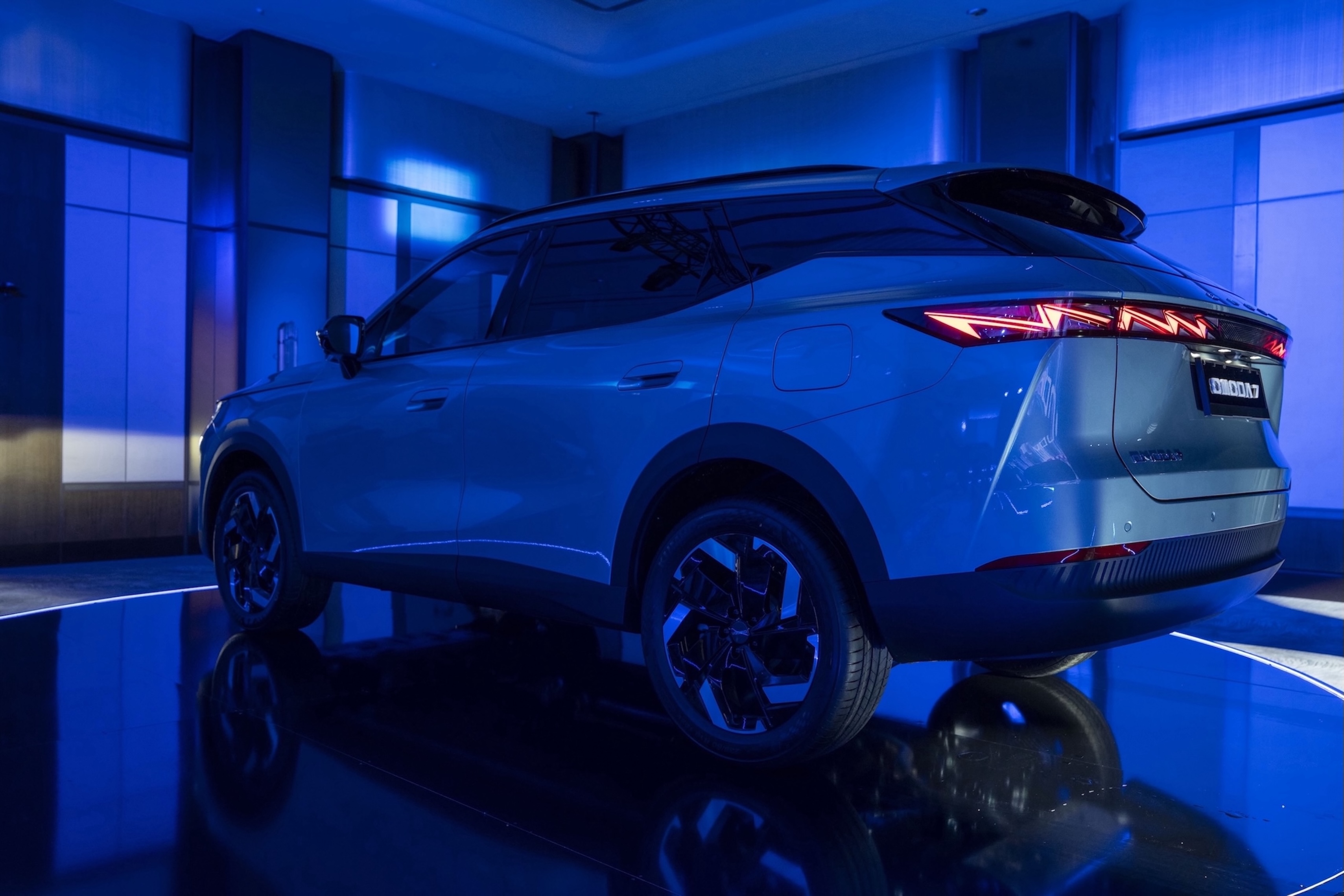 OMODA 7, markanın “Art in Motion” (Hareket Halindeki Tasarım) felsefesini dış tasarımında güçlü bir şekilde yansıtıyor. Işık ve gölge oyunlarıyla şekillenen dinamik gövde yapısı, araç duruyor olsa bile ileriye doğru bir hareket hissi yaratırken, dengeli ve akıcı oranlar SUV karakterini modern bir yorumla sunuyor.
