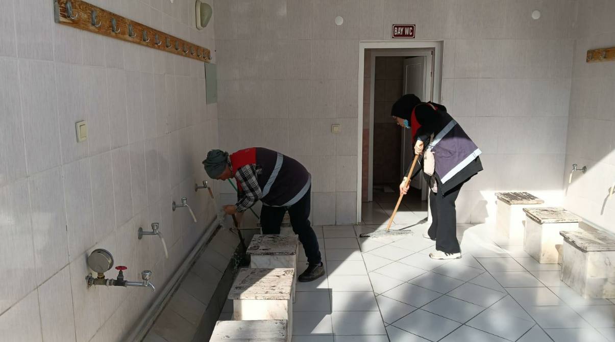 Vatandaşların ibadetlerini hijyenik ortamda gerçekleştirebilmesi amacıyla yürütülen çalışmalar kapsamında camiler düzenli olarak temizleniyor. Sabahın erken saatlerinde göreve başlayan ekipler, program dahilinde cami içi ve çevresinde kapsamlı temizlik yapıyor. Halılar, camlar, ayakkabılıklar, minber ve mihrap gibi alanlar titizlikle temizlenirken, abdesthane ve tuvaletler de yıkanarak hijyenik hale getiriliyor.