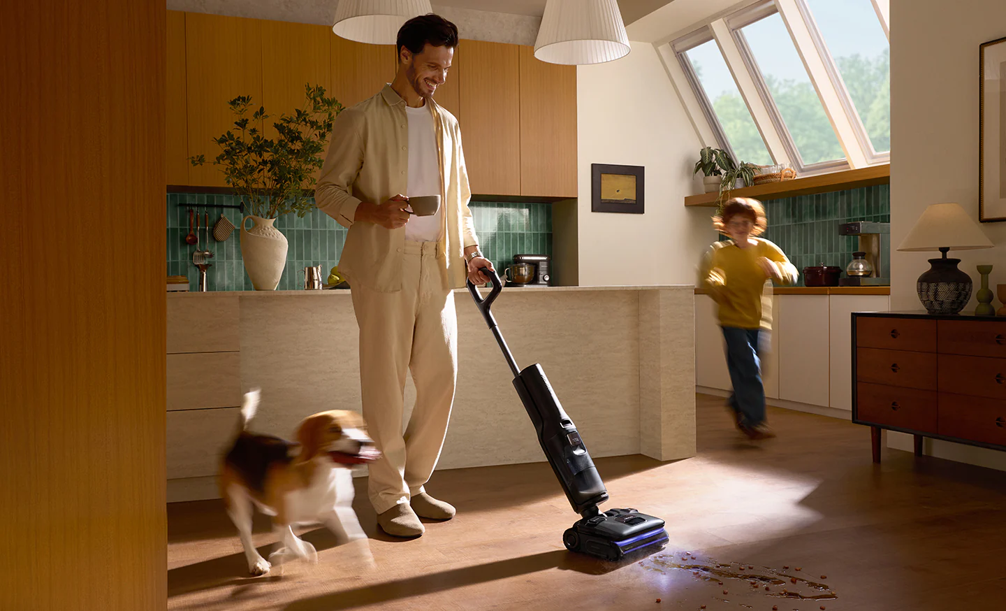 VaporFlow™ buhar sistemi sayesinde yaklaşık 180 °C’ye ulaşan yüksek sıcaklıktaki buharı yüzeye temas ettirerek kimyasal kullanımı gerektirmeyen yoğun bir temizlik süreci kurguluyor. Buna eşlik eden WaveFlow™ sıcak su teknolojisi ise yaklaşık 86 °C seviyesindeki su akışıyla özellikle yağlı ve yapışkan lekelerin çözülmesini kolaylaştırıyor. Mekanik tarafta konumlanan JawScrapers ve Streak-Free Roller tasarımı, kirleri yüzeyden fiziksel olarak kazıyarak iz bırakmadan toplamaya odaklanırken; SlideTech 2.0 manevra sistemicihazın engeller etrafında daha dengeli ve akıcı hareket etmesine imkân tanıyor. FlatReach 2.0 gövde yapısı ise alçak mobilya altlarına erişimi kolaylaştırarak temizliğin ulaşılması zor alanlarda da devam edebilmesine alan açıyor.