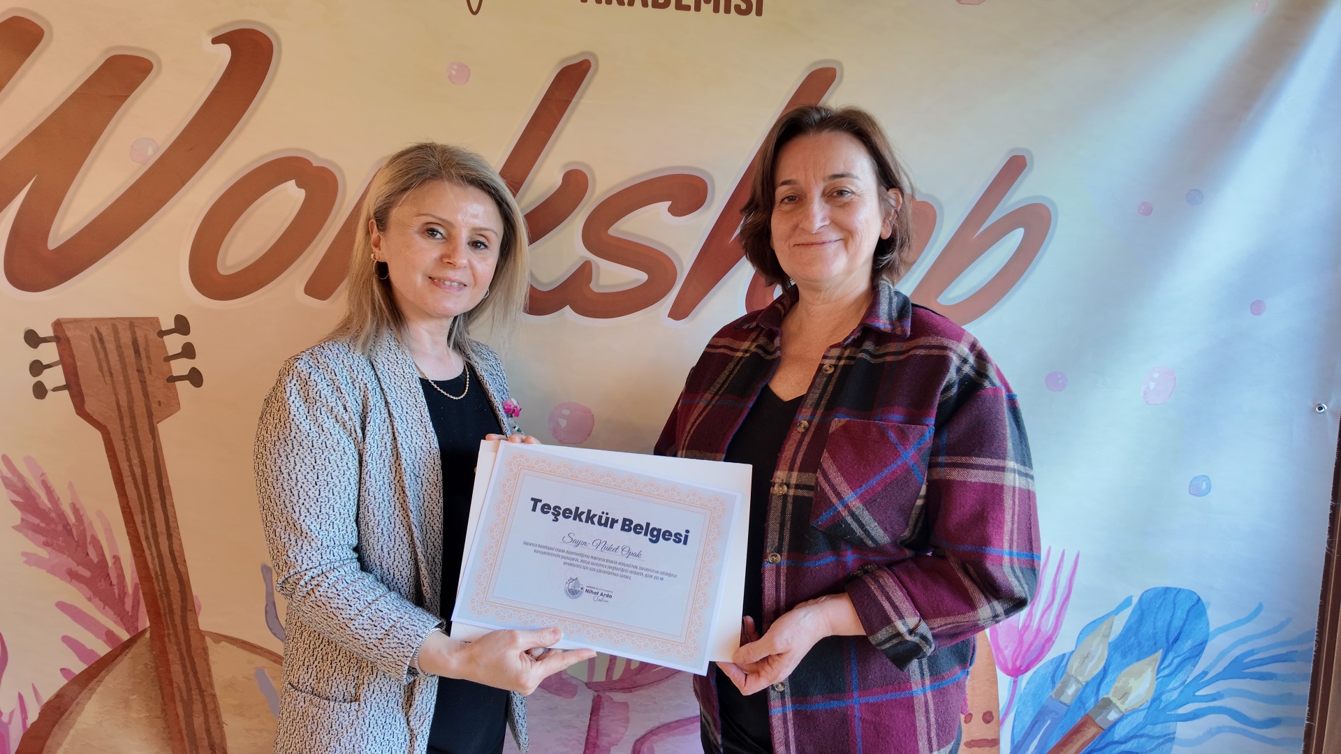 Program sonunda workshopun eğitmenliğini üstlenen Nüket Opak’a katkılarından dolayı teşekkür belgesi takdim edildi. Teşekkür belgesini,  Sapanca Belediyesi  Bayın Yayın ve Halkla İlişkiler Müdürü Emine Tarım tarafından verildi.