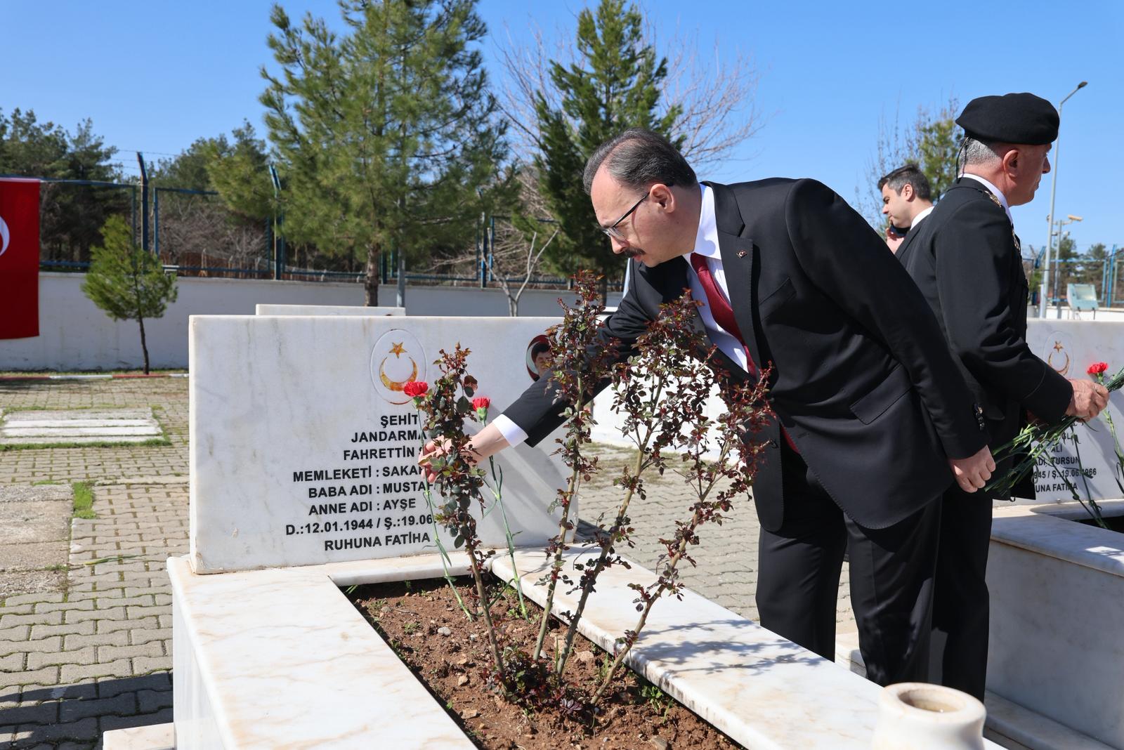 Buradaki tören Vali Kızılkaya ve protokol üyelerinin şehit kabirlerine karanfil bırakması ile sona erdi.