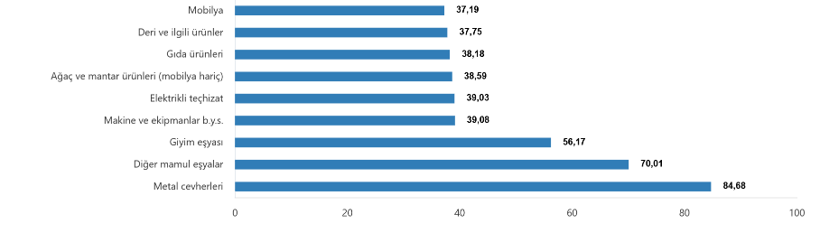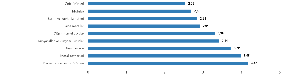 Ana sanayi gruplarının yıllık değişimleri; ara mallarında yüzde 32,95, dayanıklı tüketim mallarında yüzde 45,18, dayanıksız tüketim mallarında yüzde 43,44, enerjide yüzde 14,12, sermaye mallarında yüzde 34,90 artış olarak gerçekleşti.