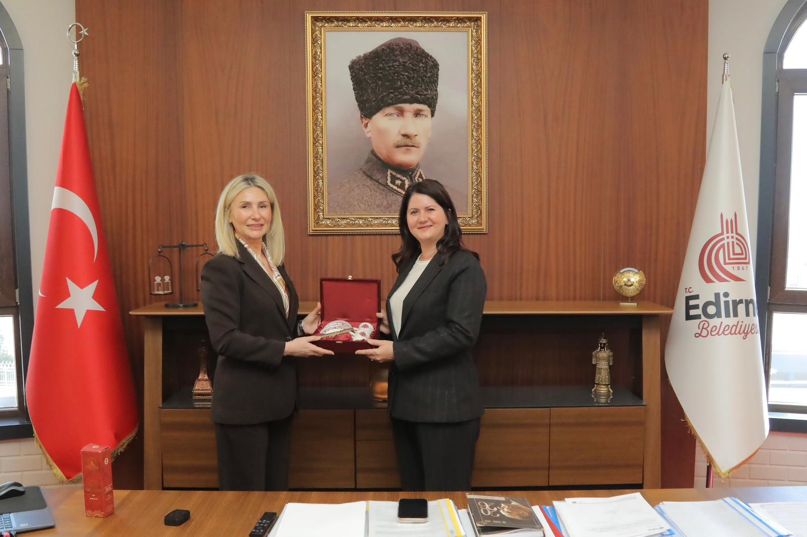 Edirne Şehir Gönüllüleri Vakfı Mütevelli Heyet Başkan Vekili Sibel Yıldırım ve mütevelli heyet kurulu üyeleri, Edirne Belediyesi’ni ziyaret ederek Belediye Başkanı Avukat Filiz Gencan ile bir araya geldi.